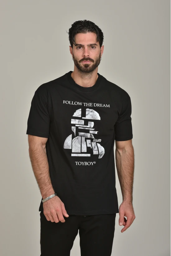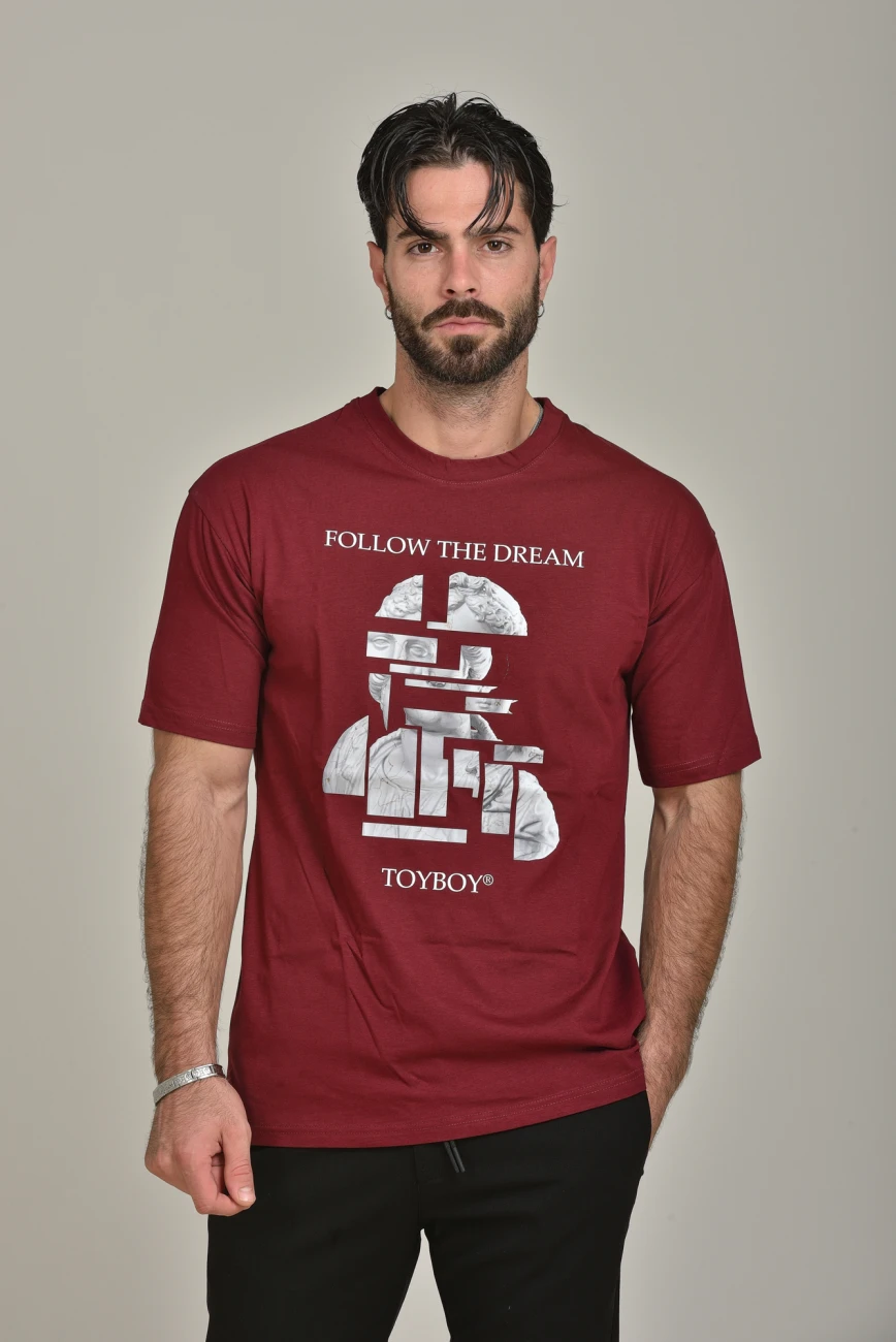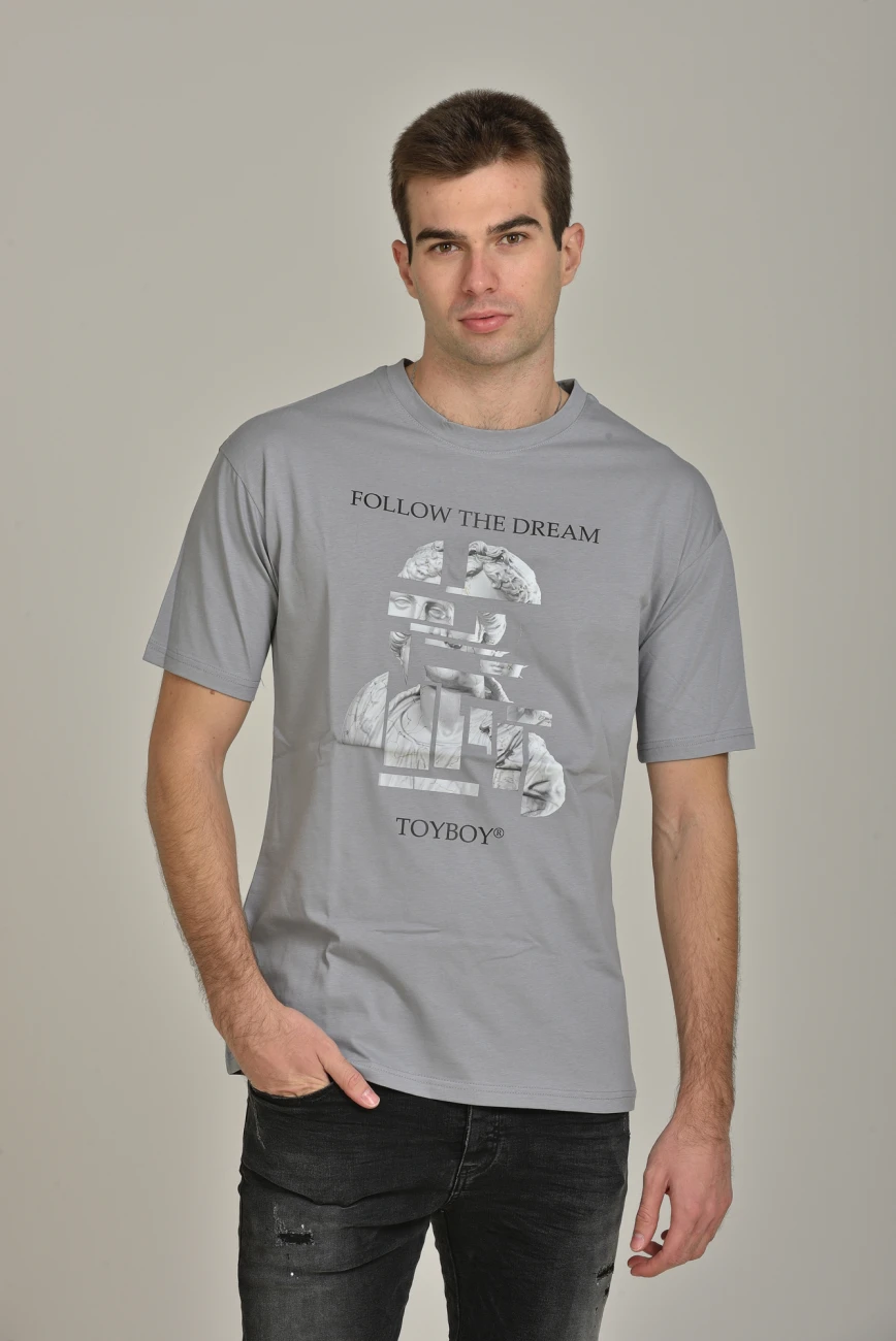 Short Sleeve Oversized T-Shirt With Regular Finish & Ancient Greek Statue Print With TOYBOY’s Slogan ‘FOLLOW THE DREAM’ .